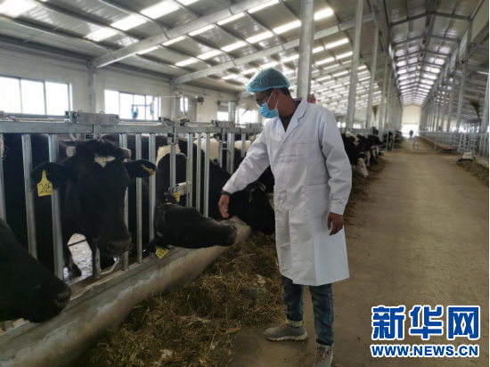 在隆子縣聶雄標(biāo)準(zhǔn)化奶牛養(yǎng)殖場,邊巴次仁在牛舍里(2月28日攝)。新華網(wǎng) 殷小燕 攝