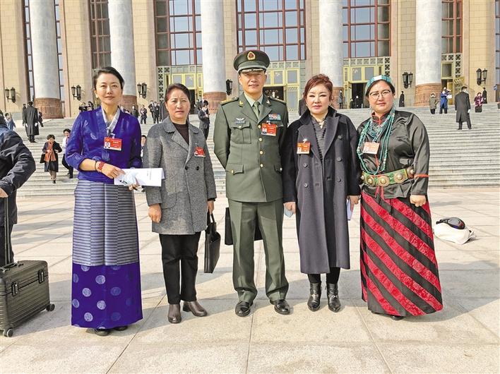 圖為住藏全國政協(xié)委員在會(huì)場外合影。記者 李洲 特約記者 旦增赤列 攝