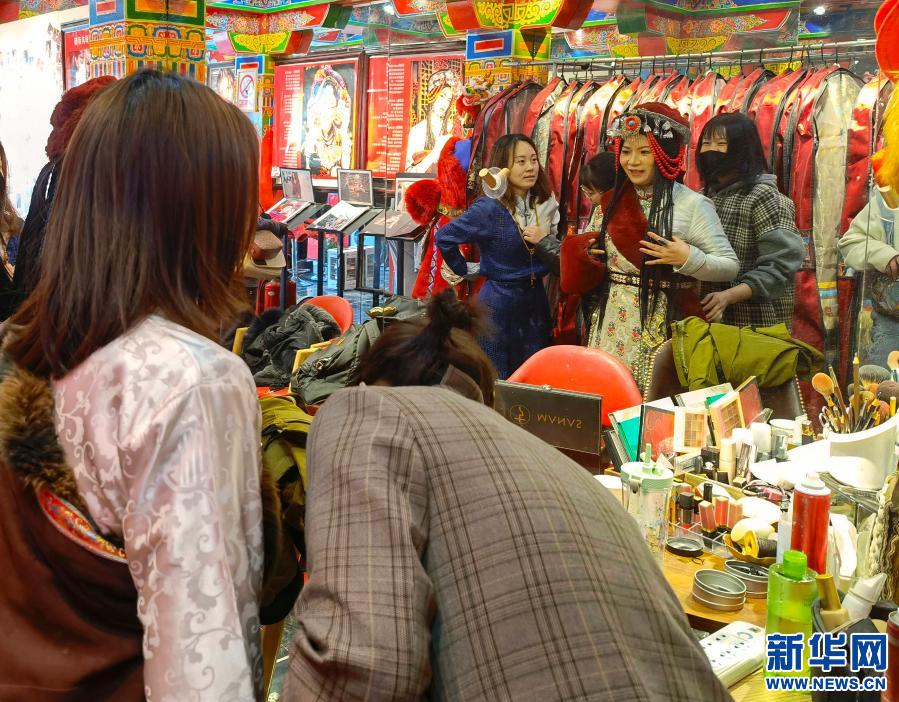 圖為換上藏裝準(zhǔn)備拍攝寫真的游客(2021年3月20日攝)。新華社記者李鍵 攝