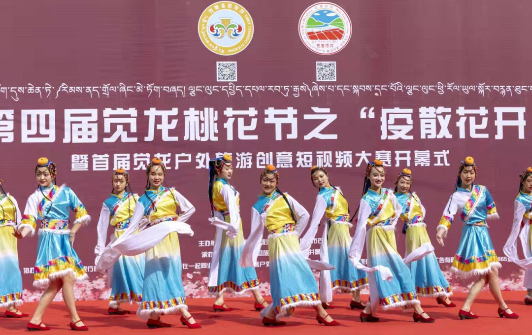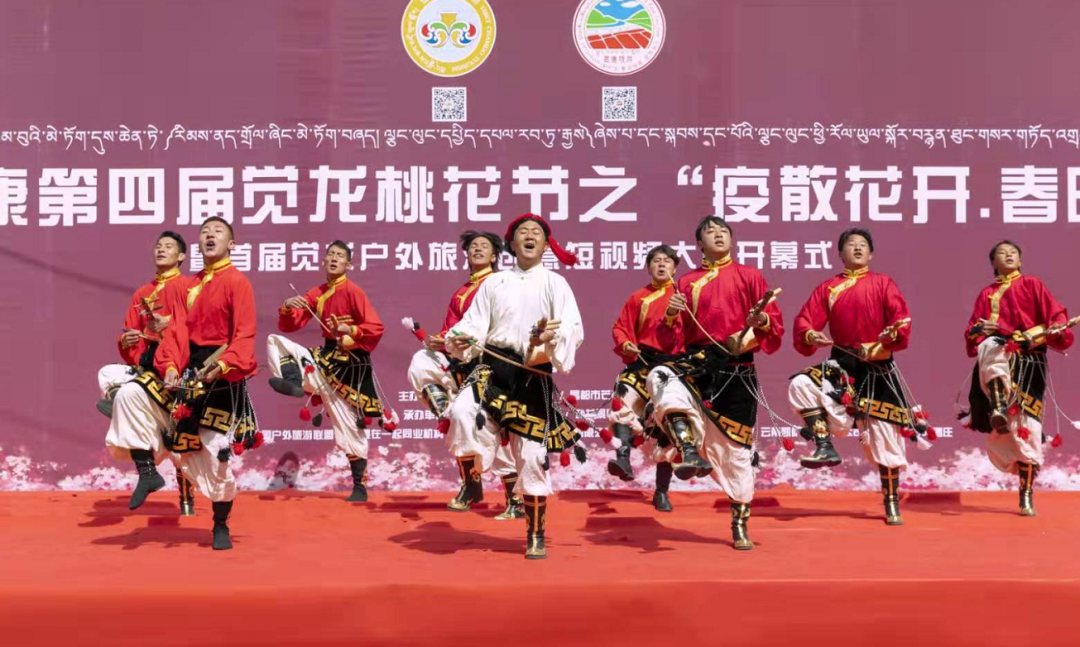 4月3日活動正式開幕,開幕式上,昌都市人大常委會主任、黨組書記,芒康縣委書記齊應海宣布活動開幕,并為納西民族鄉(xiāng)覺龍村頒授了《全國鄉(xiāng)村旅游重點村》獎牌。昌都市旅游發(fā)展局副局長蔡慶,芒康縣委常委、常務副縣長杜晨光出席開幕式并致辭。麗江藝術(shù)團和芒康藝術(shù)團帶來的歌舞《吉祥謠》《福滿昌都》《崗拉梅朵》等精彩紛呈的表演為在場觀眾帶來了一場歌舞盛宴。開幕式后,游客們循著山谷中遍野的桃花,漫步山野田間,記錄著每一個美麗的瞬間。出了覺龍溝,大家在扎古西大峽谷參觀了文成公主廟和崗達寺,傍晚在云曲莊園大家圍著篝火跳起了歡快的舞蹈。