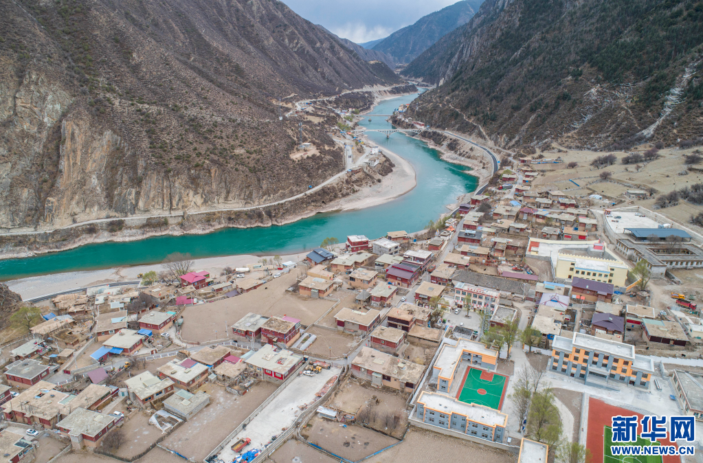 這是“西藏解放第一村”——昌都市江達(dá)縣崗?fù)墟?zhèn)崗?fù)写澹?月23日攝,無人機(jī)照片)。新華社記者孫非 攝