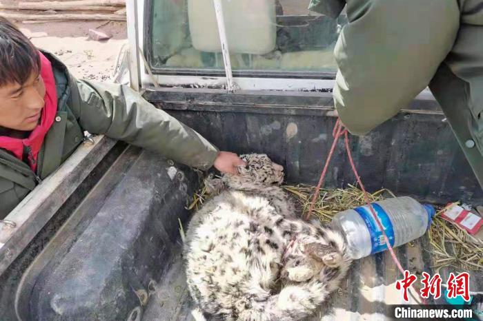 西藏阿里改則縣對該雪豹進(jìn)行救助、喂養(yǎng),待其擁有捕獵能力后再放歸。西藏改則縣林業(yè)和草原局 供圖