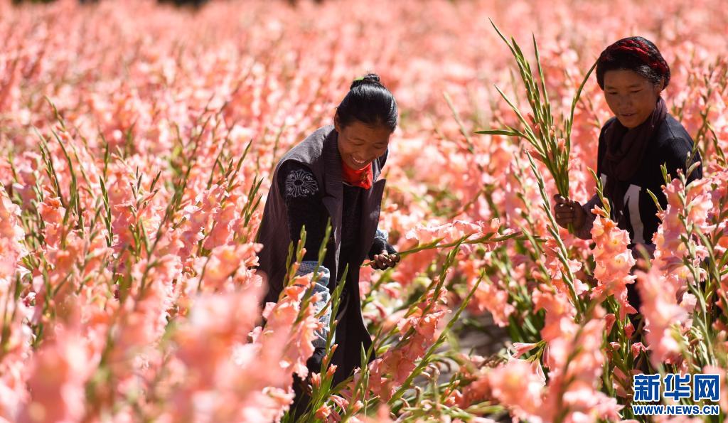 近年來(lái),西藏拉薩市曲水縣才納鄉(xiāng)種植試驗(yàn)基地試種薰衣草、馬鞭草、鼠尾草及各類藥材,成為拉薩市最大的“經(jīng)濟(jì)花園”。2017年10月7日,拉薩市曲水縣才納鄉(xiāng)村民旦增卓嘎(左)和貢桑(右)在基地里采摘作物。新華社記者 普布扎西 攝