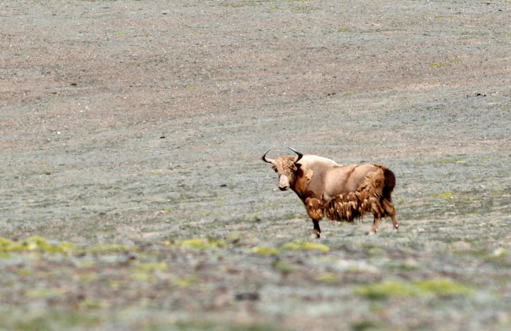 西藏羌塘國(guó)家級(jí)自然保護(hù)區(qū)內(nèi)的一只金絲野牦牛(2018年8月4日攝)。新華社記者 張汝鋒 攝