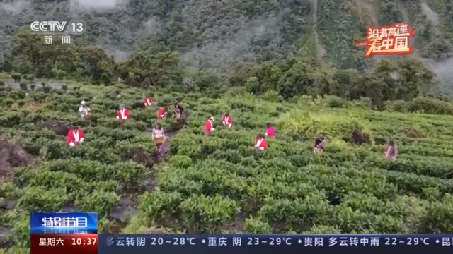 總臺(tái)記者 孟湛東:在公路沿線還可以看到這樣大片的茶園,這一片茶場(chǎng)叫作果果塘茶場(chǎng)。下車之后發(fā)現(xiàn)身邊有很多的這樣的采茶師傅已經(jīng)開(kāi)始聚在一起采摘今年的新茶了,墨脫縣的茶葉種植總面積是超過(guò)了25000畝,人均達(dá)到2.5畝。2016年,全縣農(nóng)牧民人均可支配收入是近8000元,而到了去年這樣一個(gè)數(shù)字是提升到了12000多元。