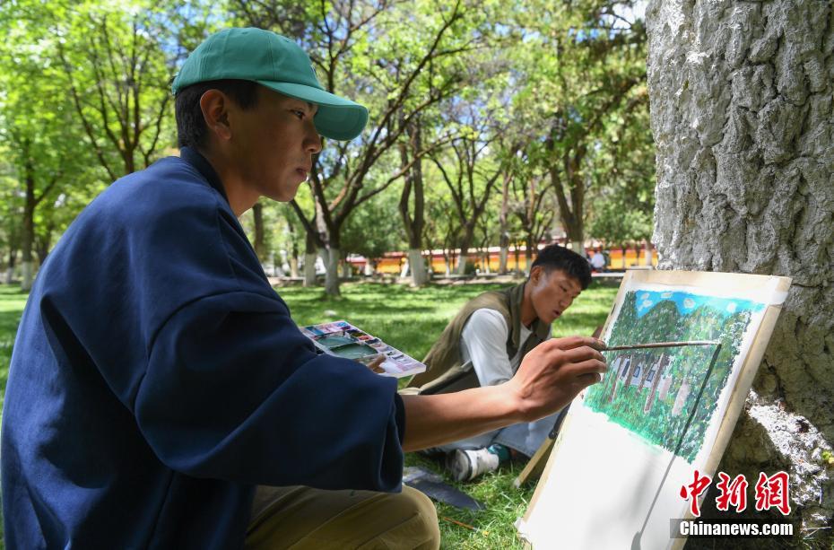 7月8日,西藏大學(xué)建筑系學(xué)生前往西藏自治區(qū)拉薩市城關(guān)區(qū)羅布林卡進(jìn)行建筑美術(shù)實(shí)習(xí)。在7天的實(shí)習(xí)中,學(xué)生們將在哲蚌寺、色拉寺等地,把西藏民族特色建筑、風(fēng)景一幅幅手繪在紙上。圖為西藏大學(xué)建筑系學(xué)生手繪羅布林卡風(fēng)景。 中新社記者 貢嘎來(lái)松 攝