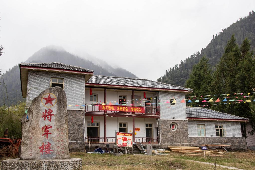 在易貢茶場,一座二層石木結(jié)構(gòu)的小樓前立著一塊石碑,上面用紅漆書寫著“將軍樓”3個大字。據(jù)介紹,這是當年十八軍軍長張國華將軍在藏期間的辦公起居地之一?!安筷犃粝铝?0幢樓房和11幢平房,這是茶場最珍貴的紅色遺跡?!辈懦陶f。