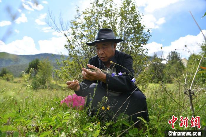 圖為方震東在香格里拉高山植物園觀察植物。劉冉陽(yáng) 攝