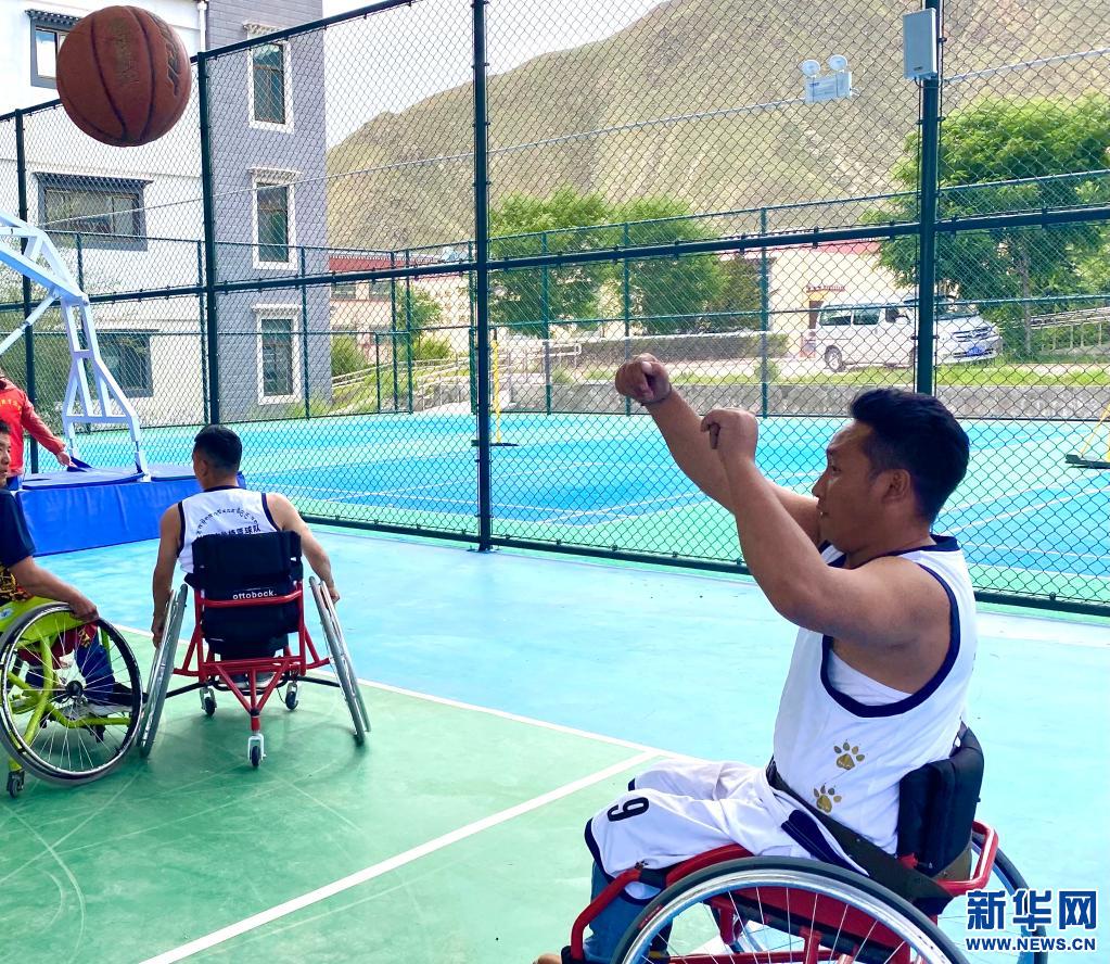 “走,打籃球去!”坐在輪椅上的覺列趁著周末,招呼他的朋友們來到拉薩市殘疾人托養(yǎng)中心的籃球場(chǎng)打球。