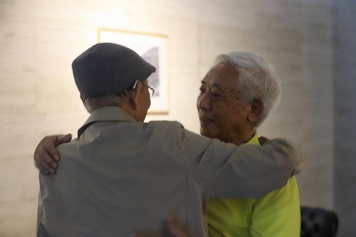 其加達(dá)瓦與梁世雄(背影者)時(shí)隔56年再次重逢(2021年6月2日)。新華社記者胡拿云攝