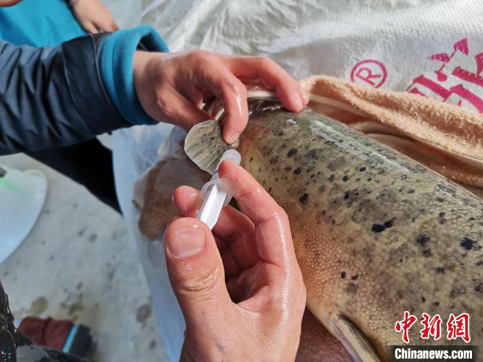 圖為多布水電站增殖放流站工作人員為魚進(jìn)行人工催產(chǎn)。