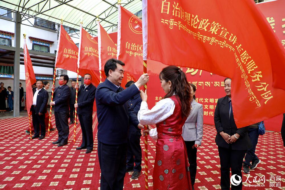 向理論政策宣講志愿服務(wù)分隊授旗。人民網(wǎng) 次仁羅布攝