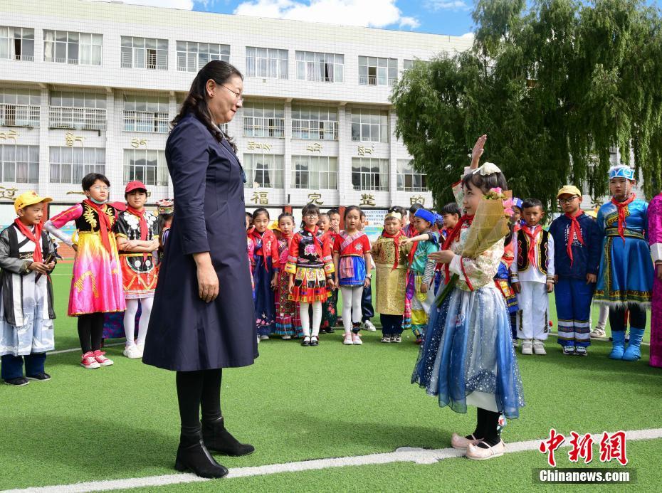 9月10日是第37個(gè)教師節(jié),西藏拉薩市第一小學(xué)舉行了以“譜團(tuán)結(jié)新篇 育桃李芬芳 感教師恩情”為主題的慶?;顒?dòng)。學(xué)生以敬禮、獻(xiàn)花、擁抱等方式,表達(dá)對老師的感恩之情。中新社記者 貢嘎來松 攝