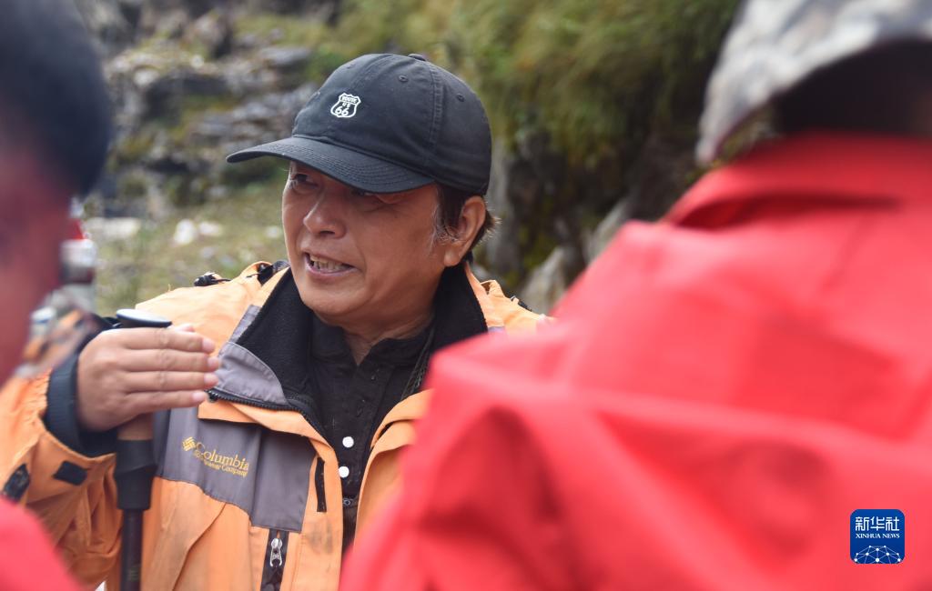 9月7日,在西藏日喀則市區(qū)域內(nèi)的喜馬拉雅山脈,中科院地理科學與資源研究所客座教授李渝生(前左)和年輕的科考隊員分析問題。新華社記者 杜剛 攝