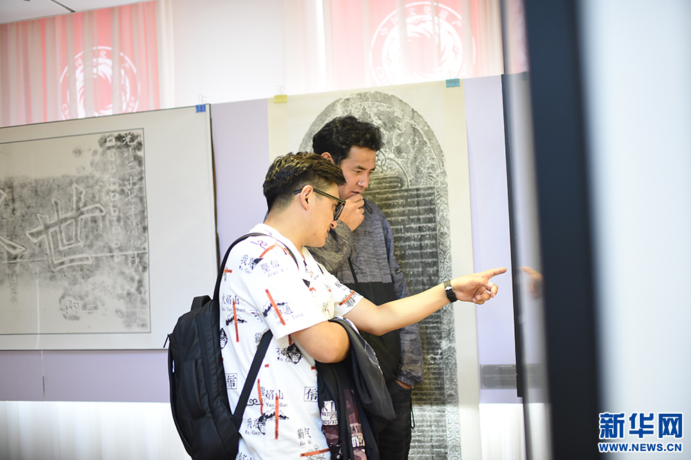 9月29日,在西藏大學(xué)新校區(qū)圖書(shū)館,參觀者觀賞石碑拓片內(nèi)容。新華網(wǎng) 旦增努布 攝