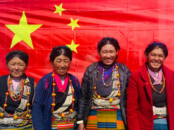 與國旗合影。圖片由拉孜縣宣傳部提供