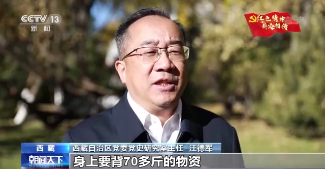 西藏自治區(qū)黨委黨史研究室主任 汪德軍:進藏部隊每一個干部戰(zhàn)士身上要背70多斤的物資,徒步走進西藏。在翻越西藏大山大河過程中,干部戰(zhàn)士克服了重重困難,一路為西藏老百姓看病送藥,讓我們西藏老百姓首先認(rèn)識了解放軍,認(rèn)識了共產(chǎn)黨。