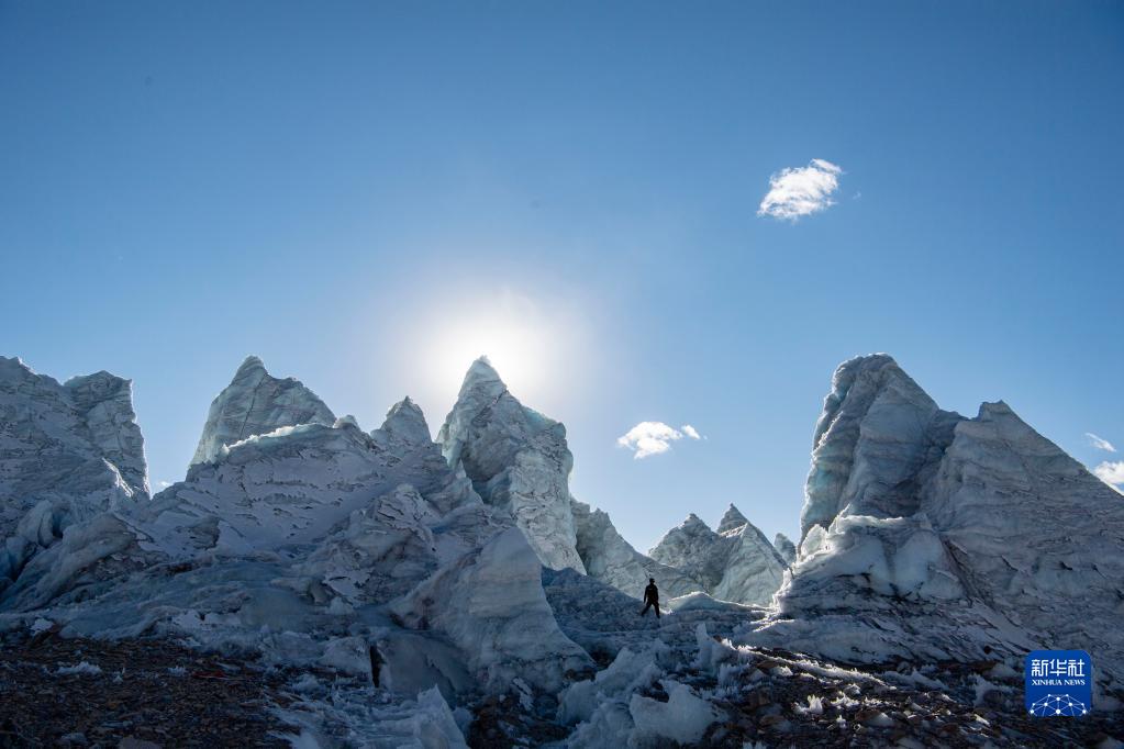 普瑪江塘邊境派出所移民管理警察巡邏路線上的崗布冰川(11月21日攝,無(wú)人機(jī)照片)。新華社記者 孫非 攝