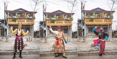 陳塘鎮(zhèn)藏戲演員在展示表演動(dòng)作(11月25日攝)。普布扎西、格桑邊覺、孫瑞博攝