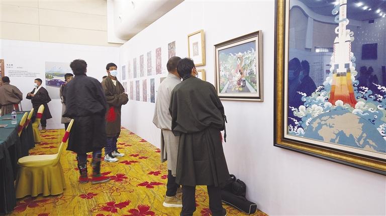 12月24日11時(shí)許,拉薩金谷飯店四樓氣氛熱烈,西藏唐卡藝術(shù)與文化協(xié)會(huì)召開(kāi)的《新時(shí)代 新唐卡 新融合——鑄牢中華民族共同體意識(shí)》主題會(huì)議暨“一飛沖天——神十三”西藏新唐卡主題藝術(shù)展在這里拉開(kāi)序幕。