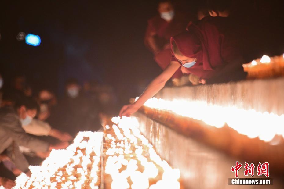 12月29日,僧眾在拉薩色拉寺點燃酥油燈。 中新社記者 貢嘎來松 攝