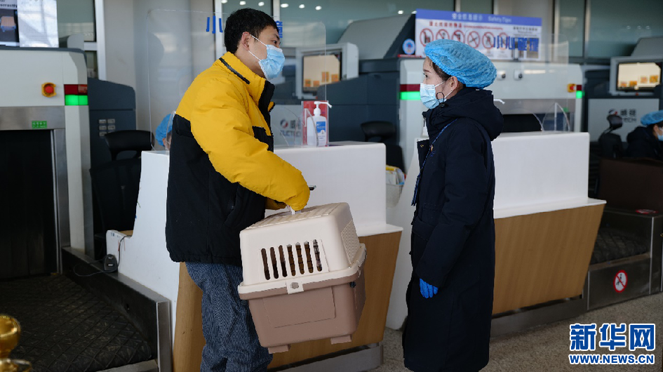 1月17日,拉薩貢嘎機(jī)場(chǎng)內(nèi)旅客正在向工作人員咨詢寵物托運(yùn)事宜。新華網(wǎng) 貢桑央吉(實(shí)習(xí)生) 攝