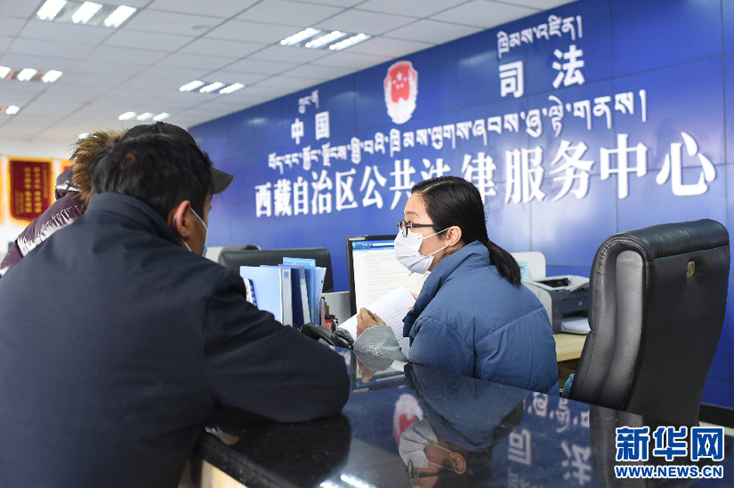 1月24日,在西藏自治區(qū)公共法律服務中心,律師為群眾講解法律咨詢。新華網 旦增努布 攝