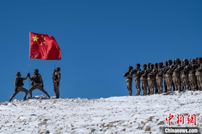 春節(jié),任務(wù)分隊官兵登上海拔5300多米的雪山之巔,舉行特別的升國旗儀式。望著高高飄揚的五星紅旗,官兵們目光堅定,向國旗敬禮,唱響國歌。身在邊關(guān),守在一線,住在大山,任務(wù)官兵表示,一定要像釘子一樣,牢牢釘在祖國的邊防線上,邊關(guān)有我在,請祖國放心。