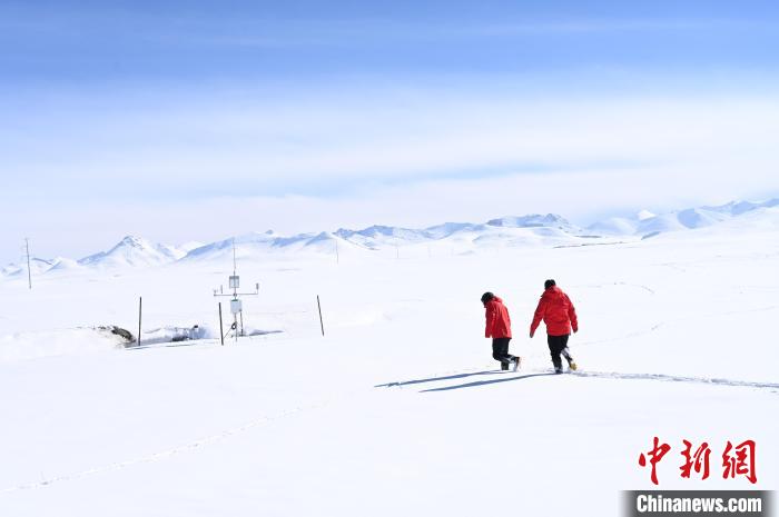 緩慢行駛過雪路,抵達(dá)納木錯(cuò)鄉(xiāng),中新社記者與中科院納木錯(cuò)多圈層綜合觀測(cè)研究站(西藏納木錯(cuò)高寒湖泊與環(huán)境國(guó)家野外科學(xué)觀測(cè)研究站,簡(jiǎn)稱納木錯(cuò)站)的兩位觀測(cè)員匯合。