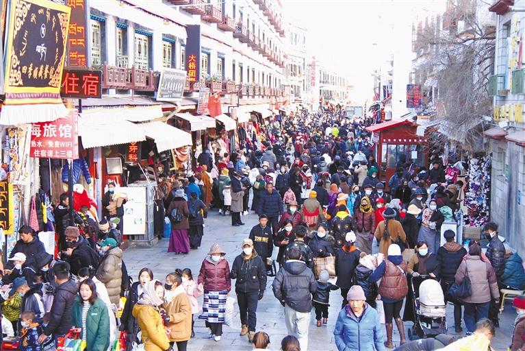 沖賽康市場(chǎng)、八廓商城、拉薩市區(qū)各大小超市……熱鬧非凡、人頭攢動(dòng),處處都是為了采購(gòu)藏歷新年年貨樂(lè)此不疲的居民群眾,耳邊盡是熟悉的吆喝聲,到處都是歡樂(lè)與喜慶。