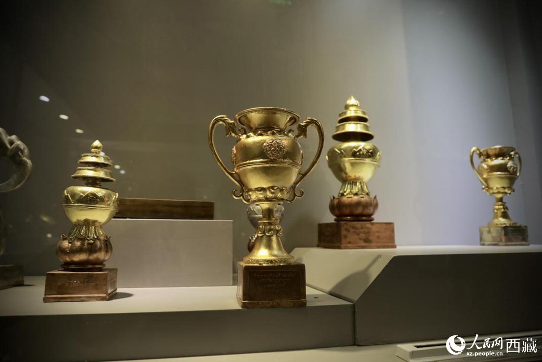 白納鍛銅工藝品——?dú)v屆跨喜馬拉雅自行車極限賽獎(jiǎng)杯。人民網(wǎng) 次仁羅布攝