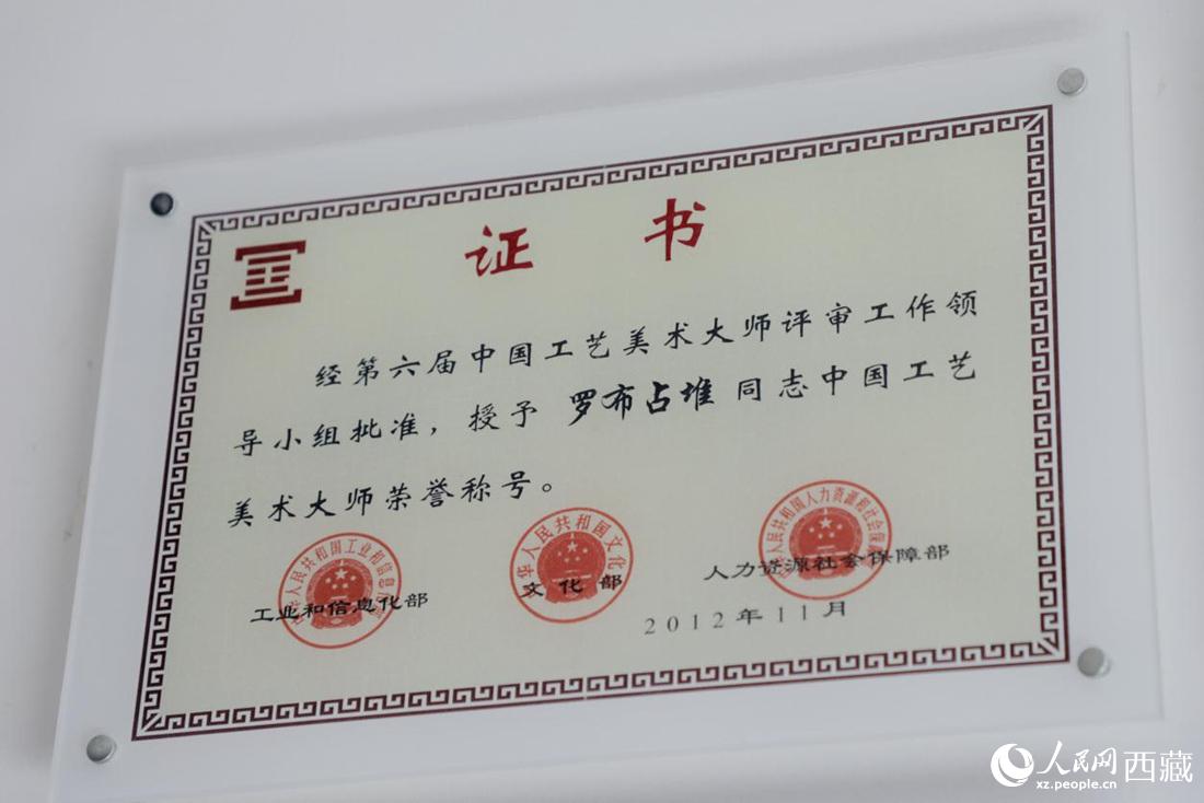 2012年傳承人羅布占堆獲中國工藝美術(shù)大師稱號(hào)。人民網(wǎng) 次仁羅布攝