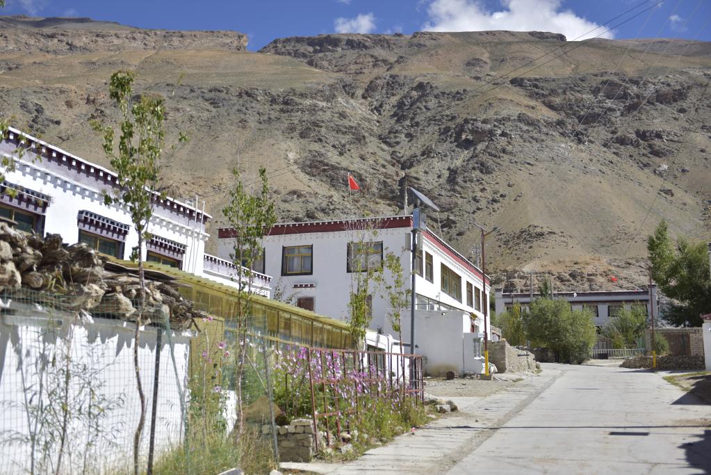 走在村里整潔的街道上,路旁一棟棟白色的藏式小院鱗次櫛比,坐在門前享受冬日暖陽的老人們臉上滿是笑意?!按罅ν七M環(huán)境整治,村里安排3名村民負責公共衛(wèi)生。”歐珠說。