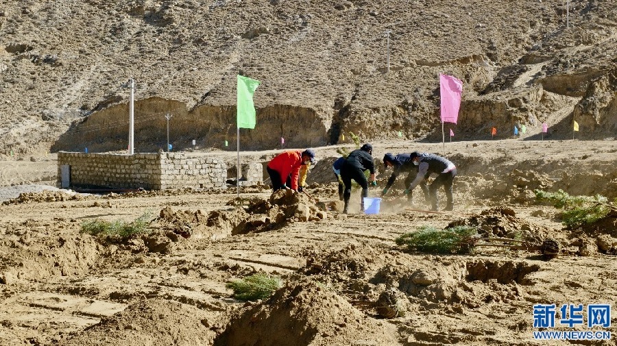 3月15日,西藏銀行員工正在進行植樹比賽。新華網(wǎng) 柑丹鴦琦 攝