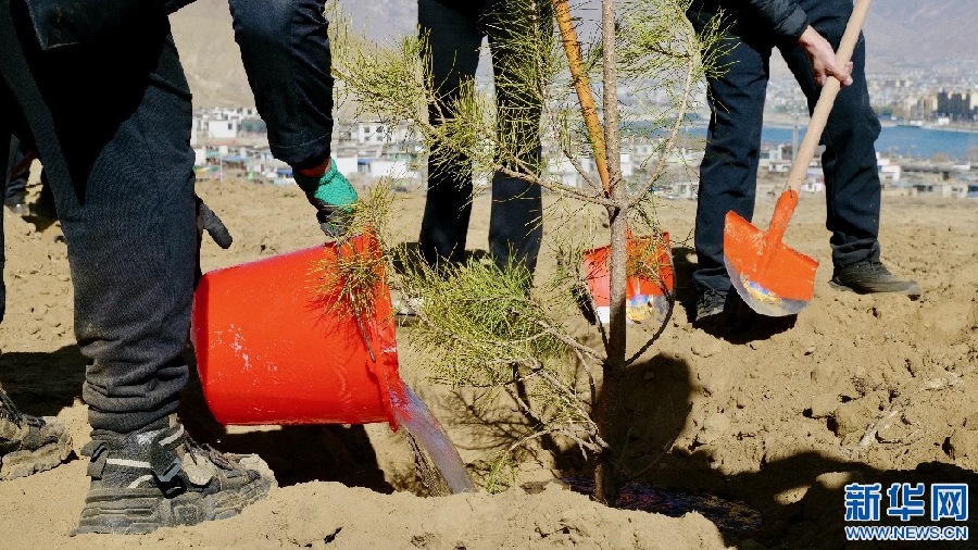 在現(xiàn)場,參加植樹的西藏銀行員工們,熱情飽滿、干勁十足,7人一組,搬苗、扶枝、封土、澆水、每道工序都做得仔細認真。經(jīng)過一上午的奮戰(zhàn),300余棵油松“安家落戶”,為拉薩又增添了一片新綠。