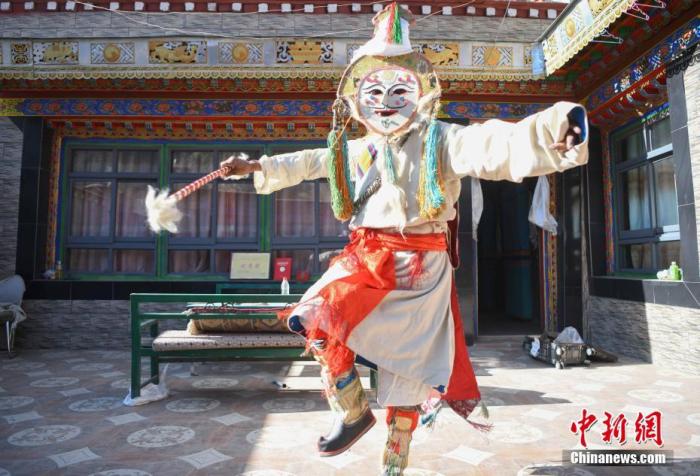 圖為3月21日,協(xié)榮“仲孜”國(guó)家級(jí)非物質(zhì)文化遺產(chǎn)傳承人桑珠。 中新社記者 貢嘎來(lái)松 攝