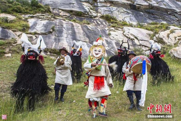 資料圖為桑珠帶領(lǐng)團(tuán)隊(duì)表演協(xié)榮“仲孜”。 中新社記者 貢嘎來(lái)松 攝