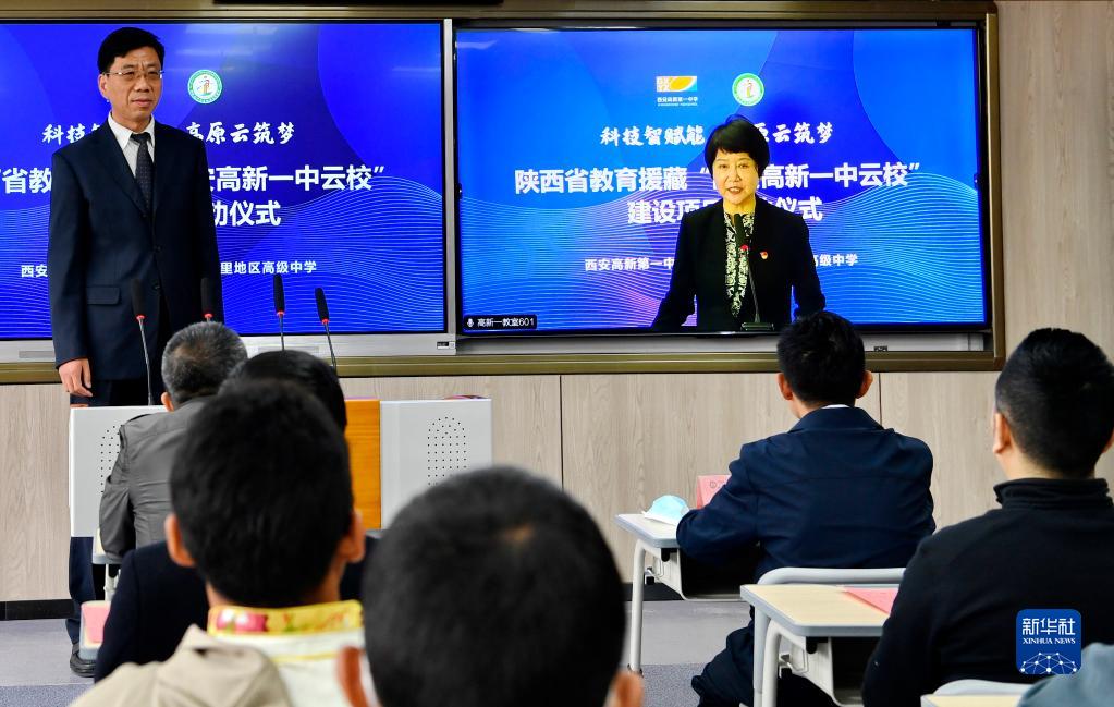 當(dāng)日,陜西省教育援藏“云?!苯ㄔO(shè)項目正式啟動。陜西省西安高新第一中學(xué)和西藏拉薩阿里地區(qū)高級中學(xué)結(jié)成“對子”,借助5G網(wǎng)絡(luò)開展教學(xué)教研互動,助力提升教育水平。