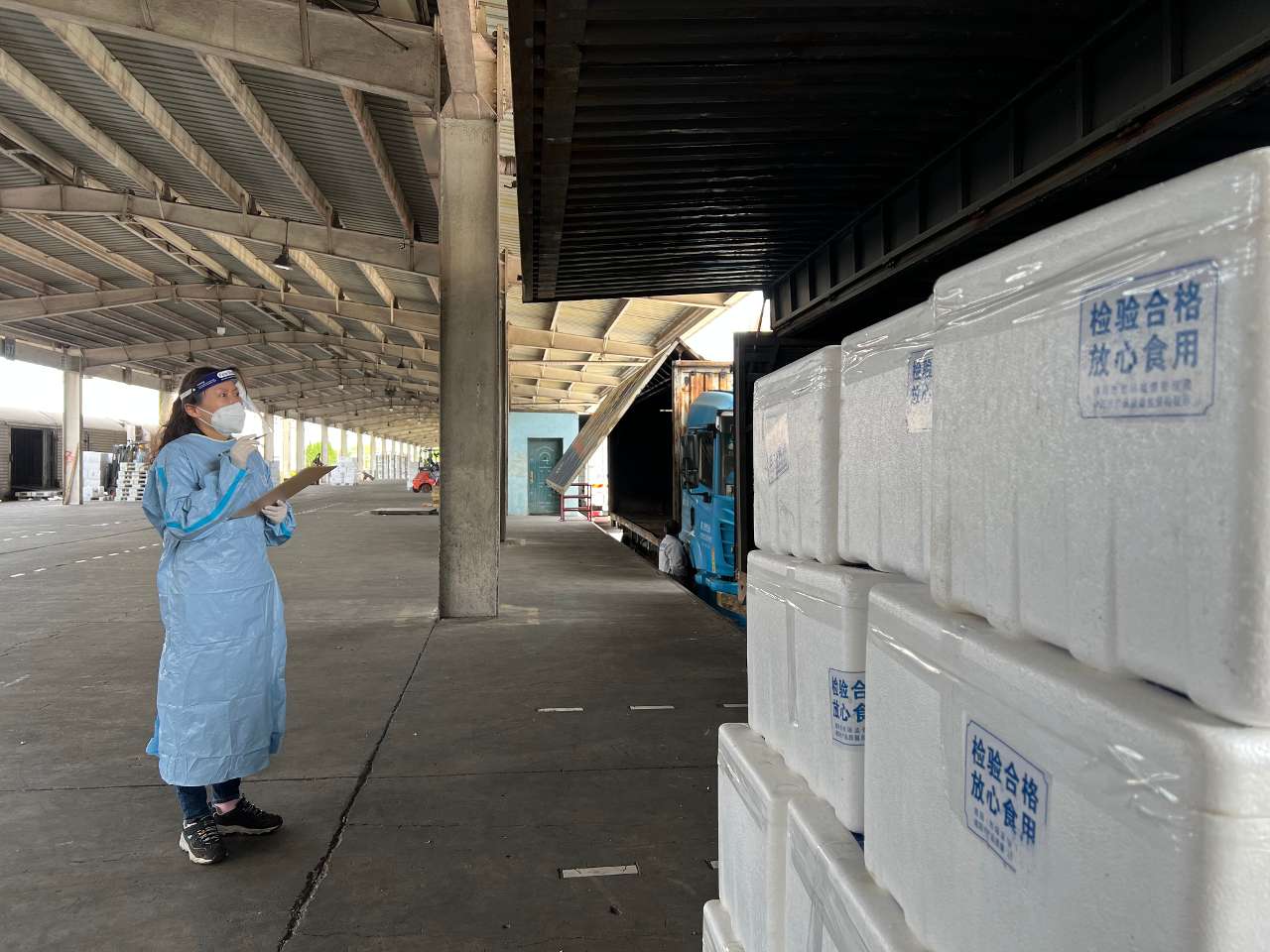 4月15日15時(shí)32分,西藏支援上海的47507次保供物資專列經(jīng)過113小時(shí)、4600多公里的長(zhǎng)途旅程,從西藏自治區(qū)日喀則西站抵達(dá)上海北郊站。該趟專列由8節(jié)貨車編組而成,100噸牦牛肉、3000噸天然飲用水等民生保障物資在快速卸車后,被短駁送往寶山區(qū)冷鏈城配中心等倉(cāng)儲(chǔ)點(diǎn)。