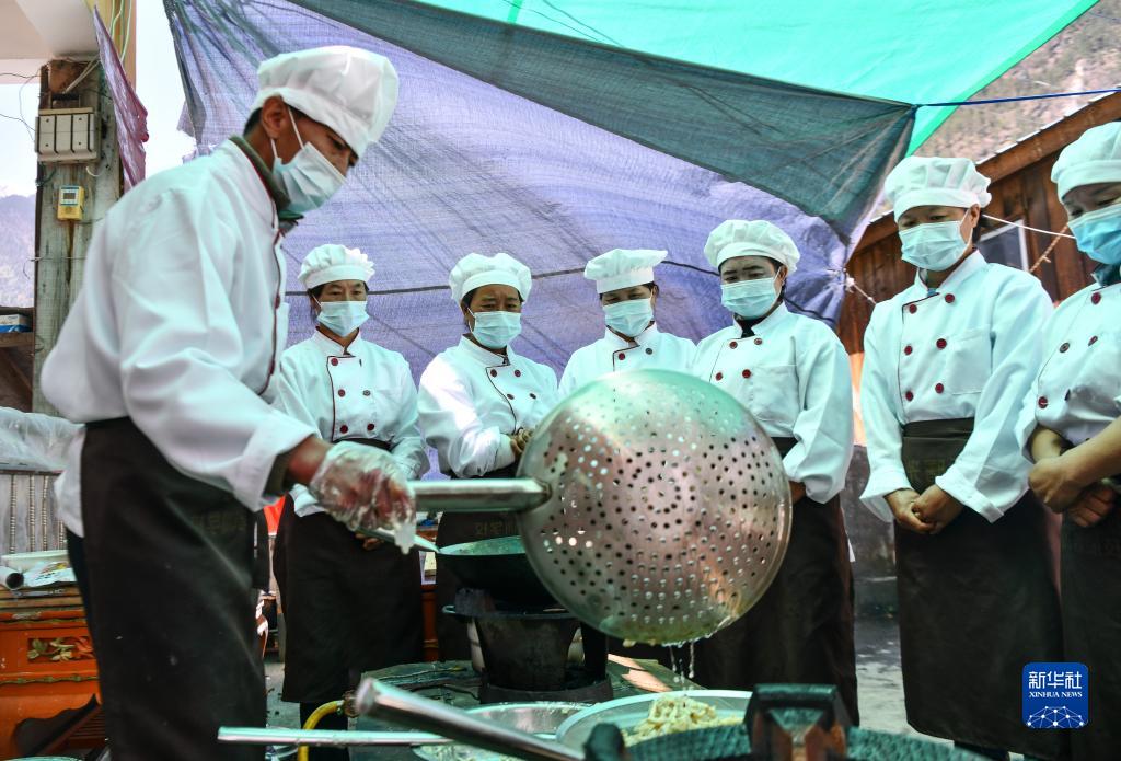 近日,在西藏林芝市察隅縣上察隅鎮(zhèn)西巴村,察隅縣人社局為當(dāng)?shù)冂蟀妥迦罕娕e行“珞巴宴”培訓(xùn)班,讓村民在家門口就能學(xué)習(xí)珞巴特色菜、藏餐、川菜、面點等烹飪技能。