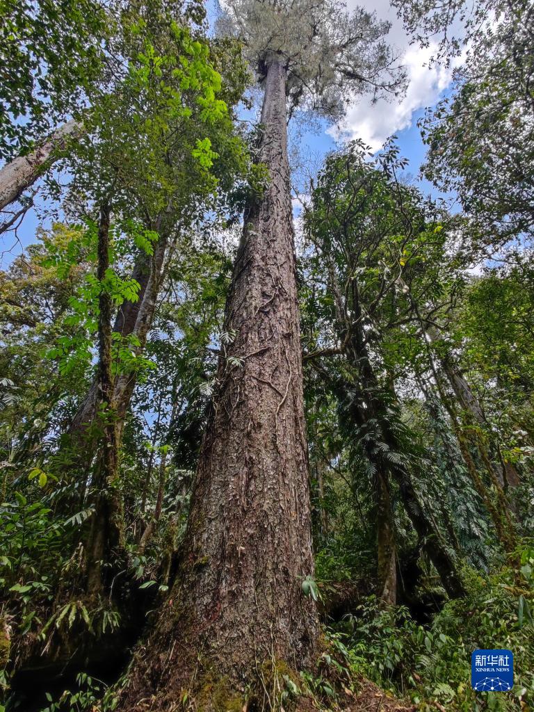 這是科研人員在西藏自治區(qū)墨脫縣背崩鄉(xiāng)格林村記錄到的高達(dá)76.8米的不丹松。(采訪對象供圖)