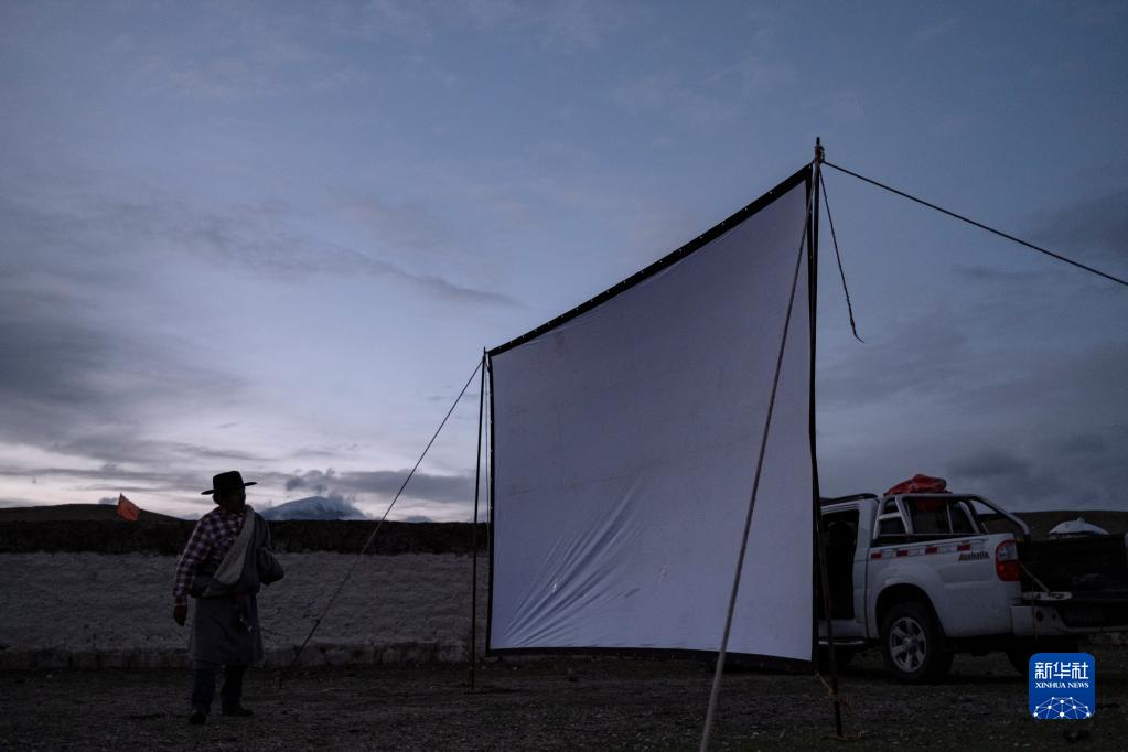 西藏當(dāng)雄縣巴靈村的村民在看電影(5月20日攝)。新華社記者 孫非 攝