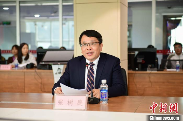 圖為西藏民族大學(xué)黨委常委、副校長(zhǎng),中國(guó)傳媒大學(xué)黨委常委、副校長(zhǎng)張樹(shù)庭在簽約儀式上講話?!∝暩聛?lái)松 攝