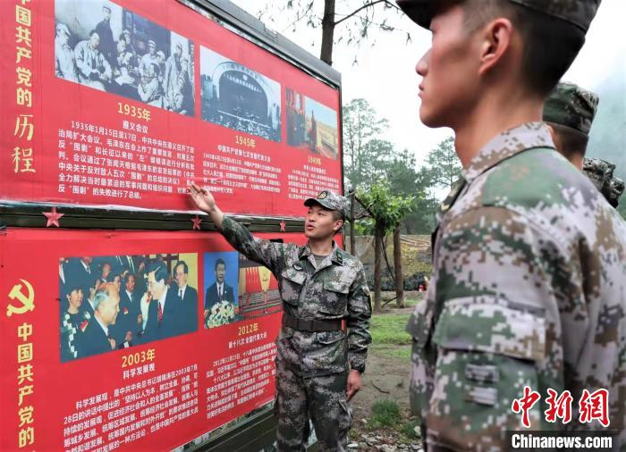 圖為官兵介紹中國(guó)共產(chǎn)黨黨史。 郝偉龍 攝
