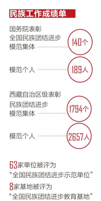 在西藏,民族團結(jié)家庭并不是個例,有不少個人和集體也為民族團結(jié)進步事業(yè)作出了突出貢獻。目前,西藏全區(qū)榮獲國務院表彰全國民族團結(jié)進步模范集體140個、模范個人189人;西藏自治區(qū)級表彰民族團結(jié)進步模范集體1794個、模范個人2657人;63家單位被評為“全國民族團結(jié)進步示范單位”,8家基地被評為“全國民族團結(jié)進步教育基地”。拉薩、日喀則、昌都、阿里、林芝5個市地成功創(chuàng)成“全國民族團結(jié)進步示范地(市)”。