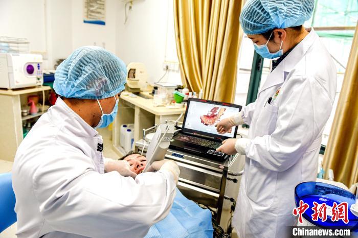 圖為醫(yī)生正在對患者進行口內掃描采集數據。彭毅 攝