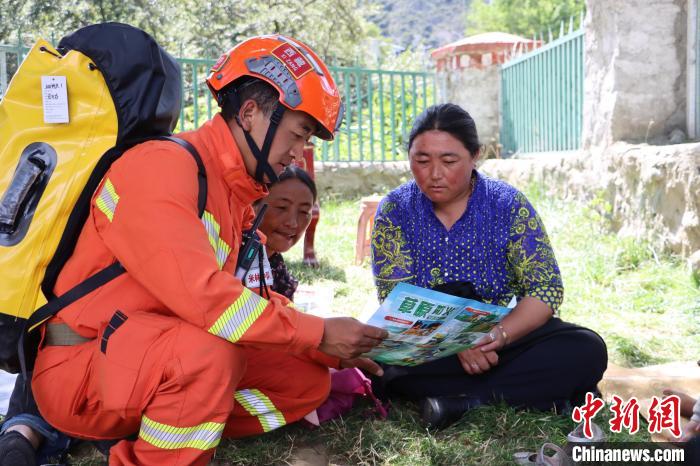 圖為拉練途中為駐地群眾普及防火知識(shí)。 林芝市森林消防支隊(duì)供圖