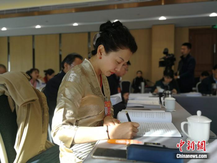 圖為邊巴拉姆在全國兩會(huì)上參加政協(xié)小組會(huì)。受訪者供圖