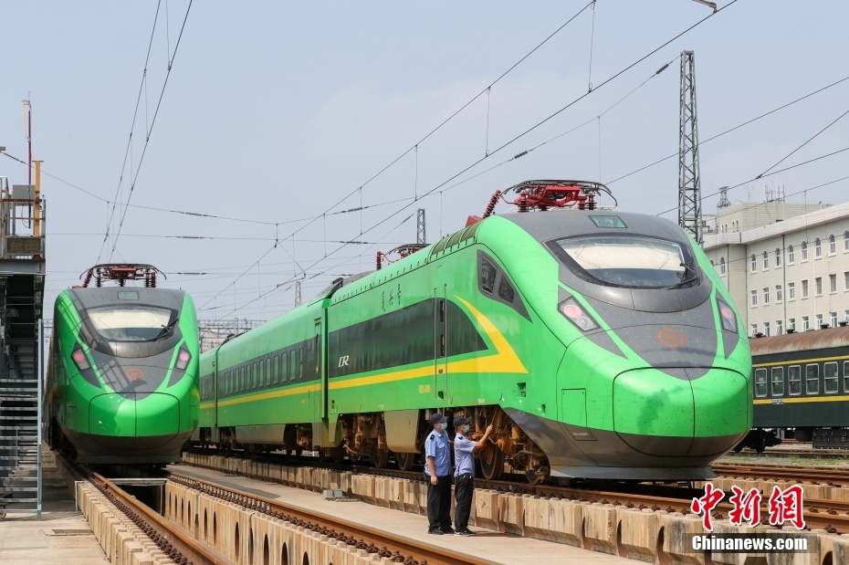 8月17日,北京車輛段西庫檢車間,檢修人員剛剛完成一列時(shí)速160公里動(dòng)力集中型復(fù)興號動(dòng)車組(俗稱“綠巨人”)的檢修工作。這里是京津冀地區(qū)唯一的“綠巨人”檢修維修基地,肩負(fù)著18列共計(jì)261節(jié)車輛的檢修任務(wù)。隨著暑運(yùn)逐漸迎來返校返程高峰,檢修人員也在加班加點(diǎn)為列車做好體檢工作,確保運(yùn)行安全。 中新社記者 賈天勇 攝