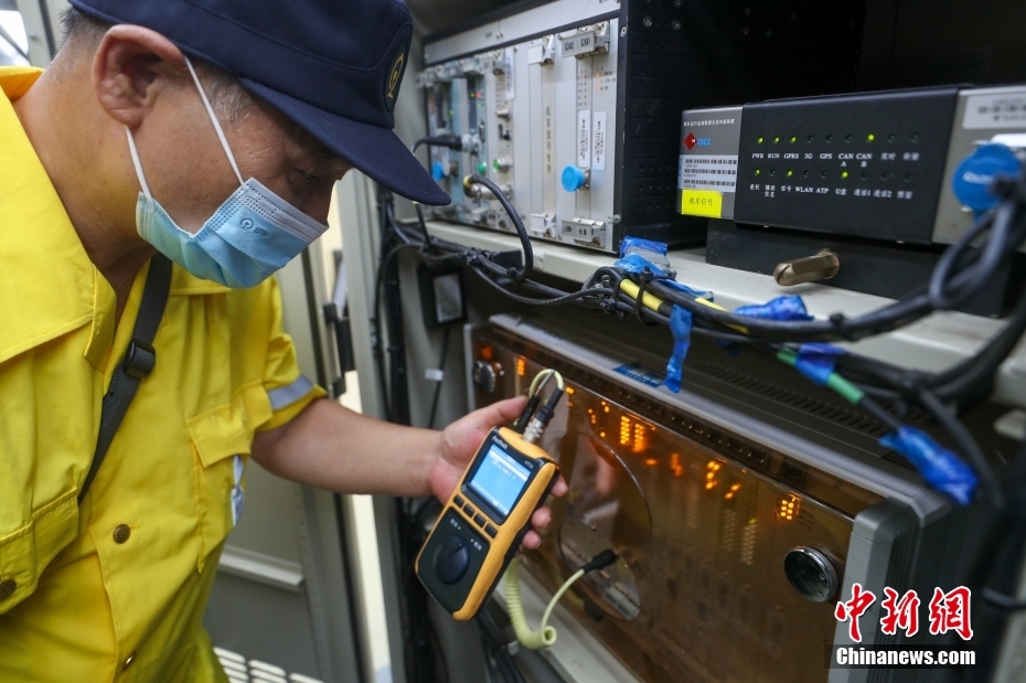8月17日,北京車輛段北京西庫檢車間內(nèi),北京電務(wù)段檢修人員對時(shí)速160公里動(dòng)力集中型復(fù)興號動(dòng)車組(俗稱“綠巨人”)的運(yùn)行數(shù)據(jù)進(jìn)行檢查。這里是京津冀地區(qū)唯一的“綠巨人”檢修維修基地,肩負(fù)著18列共計(jì)261節(jié)車輛的檢修任務(wù)。隨著暑運(yùn)逐漸迎來返校返程高峰,檢修人員也在加班加點(diǎn)為列車做好體檢工作,確保運(yùn)行安全。 中新社記者 賈天勇 攝